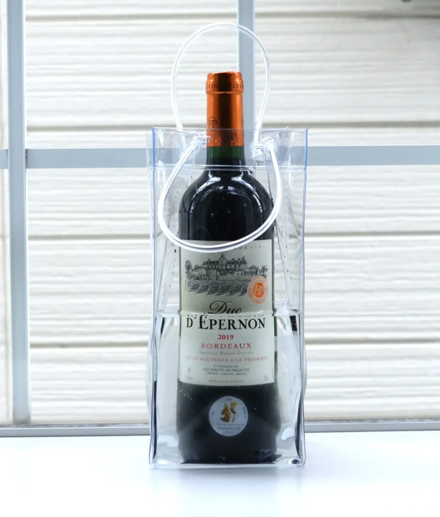 こちらはクリアバッグに水と氷を入れて持ち歩ける従来のワインバッグの進化版、ともいうべきクーラーバッグ。